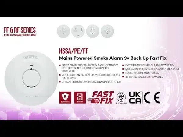 The Interconnectable Fast Fix Mains Heat Alarm with 9v Backup Battery provides reliable heat detection and safety. Designed to interconnect with other alarms, this unit includes a 9v battery backup to ensure continuous operation during power outages.
