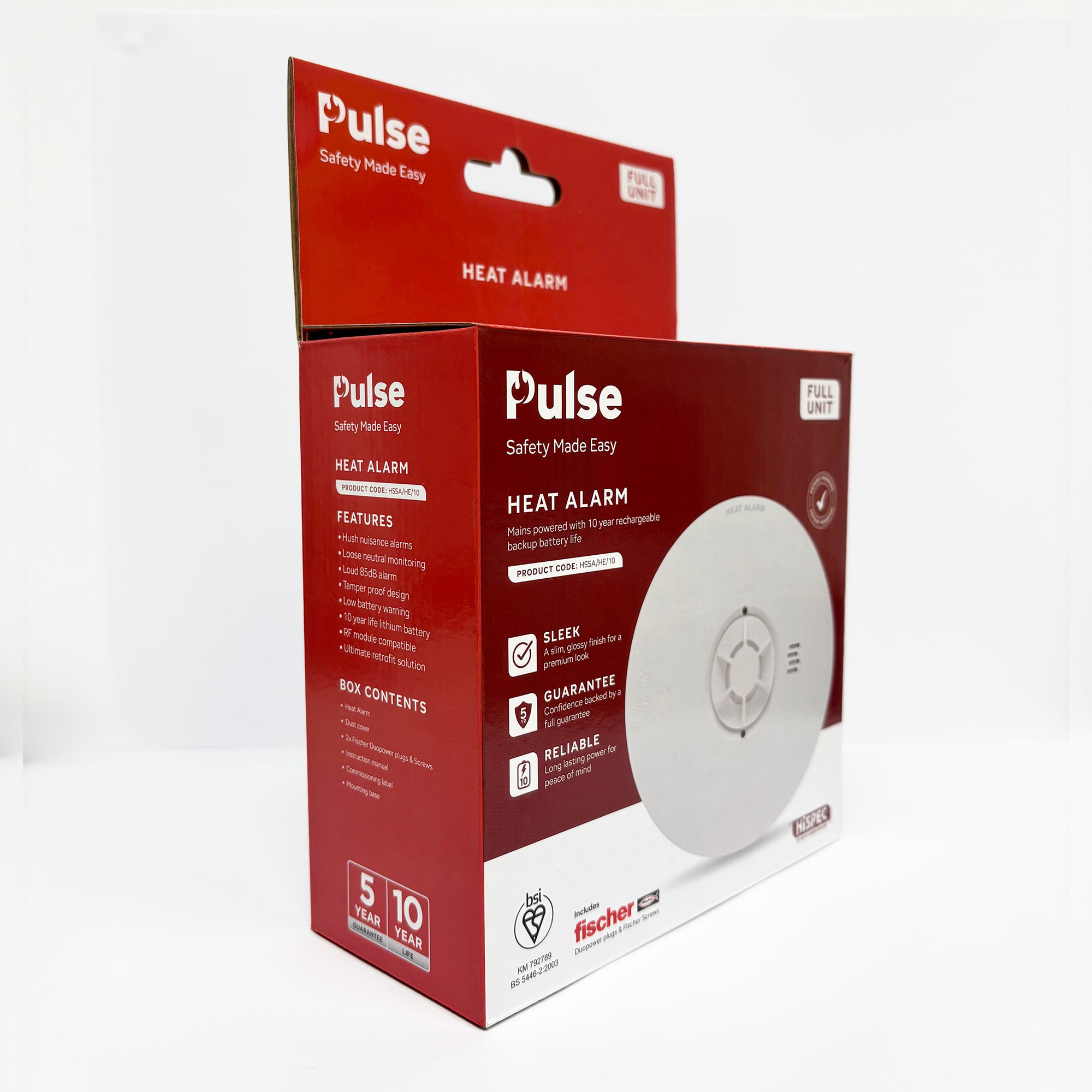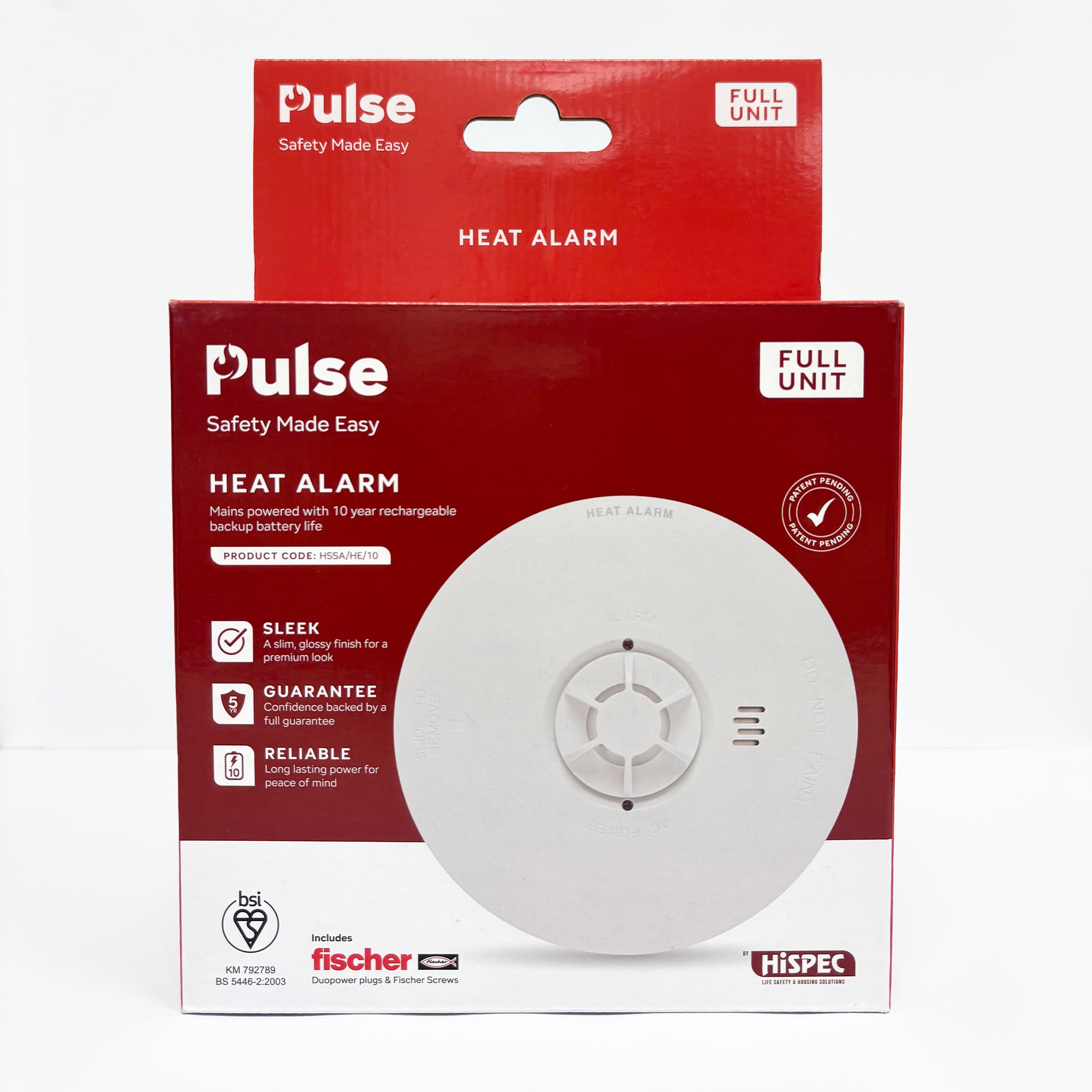 PULSE Mains Heat Alarm W/ 10 Year Lithium Battery Backup (Full Unit)