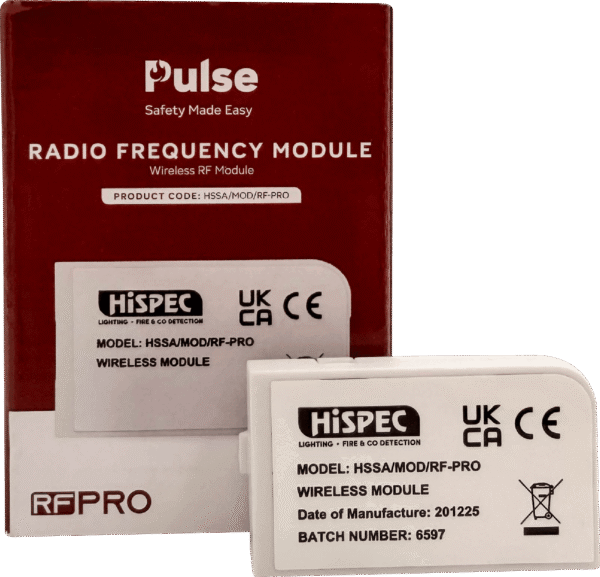 The HSSA/MOD/RF-PRO is a Radiofrequency module that plugs directly into a compatible Hispec Pulse Fire detection Alarms. The module contains a highly refined RF antenna, thoroughly tested throughout the manufacturing process for ultimate reliability and has been extensively calibrated for optimal fire safety.